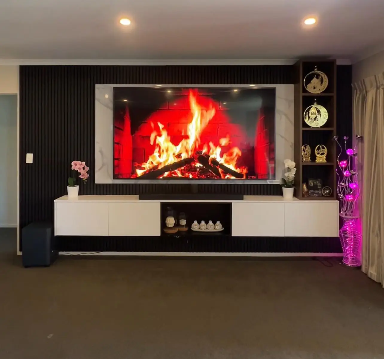 Transform your living space with a bespoke media wall that combines both form and function. Contact Core Joinery today for a free consultation and quote.